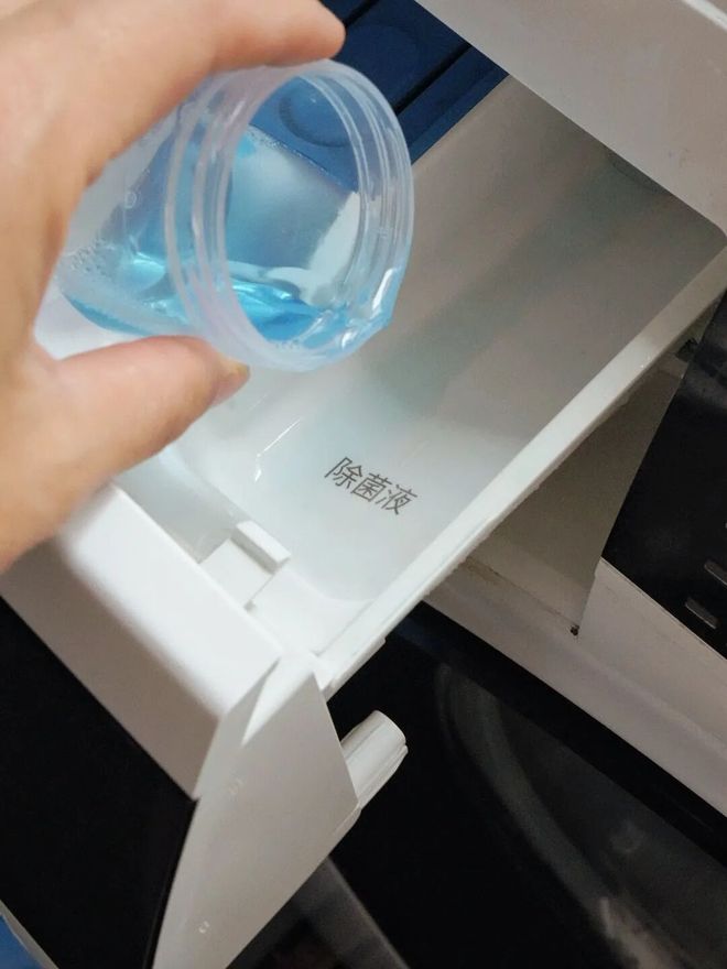 用起来很方便,有的洗衣机已预留了除菌液凹槽,也可以直接加在柔顺剂那一格。用量按照衣物来配,浓缩配方,日常五六件衣服用1/4瓶盖就可以了。