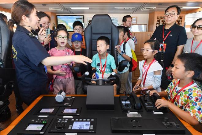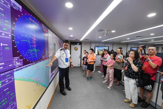 8月15日至16日,我国海事系统最大深远海专业海道测量船“海巡 08”轮在上海五号沟码头面向公众开放,千余名市民踊跃登船,近距离感受这一“国之重器”的风采。