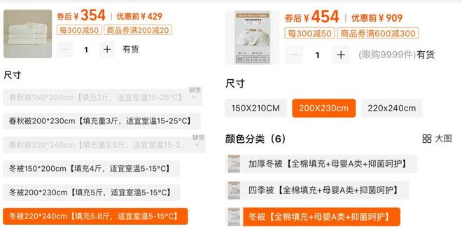 虽然咱也是棉花生产大国了,但一床6斤左右重的纯棉冬被也要三五百,不算便宜。