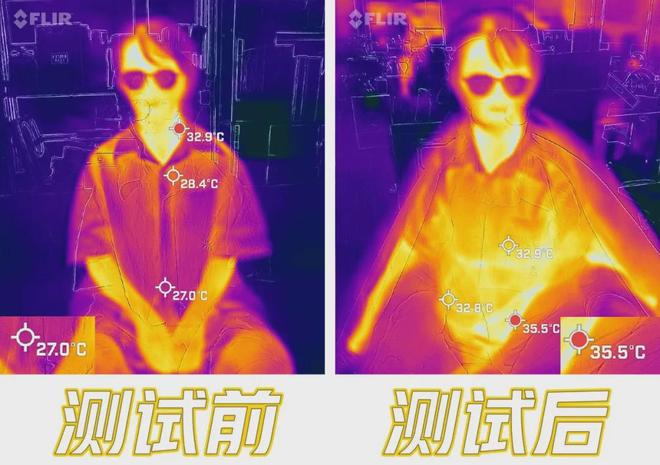 分别测量了盖上山下久奈棉被前后的温度,为的是让大家直观感受到它的保暖性: