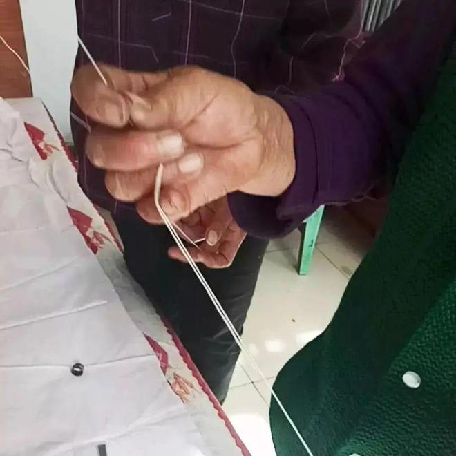 这招既考验手艺,也是棉被会不会板结、棉絮移位的关键。来来,针脚在3-5厘米之间,约300针,需两个人合作完成。